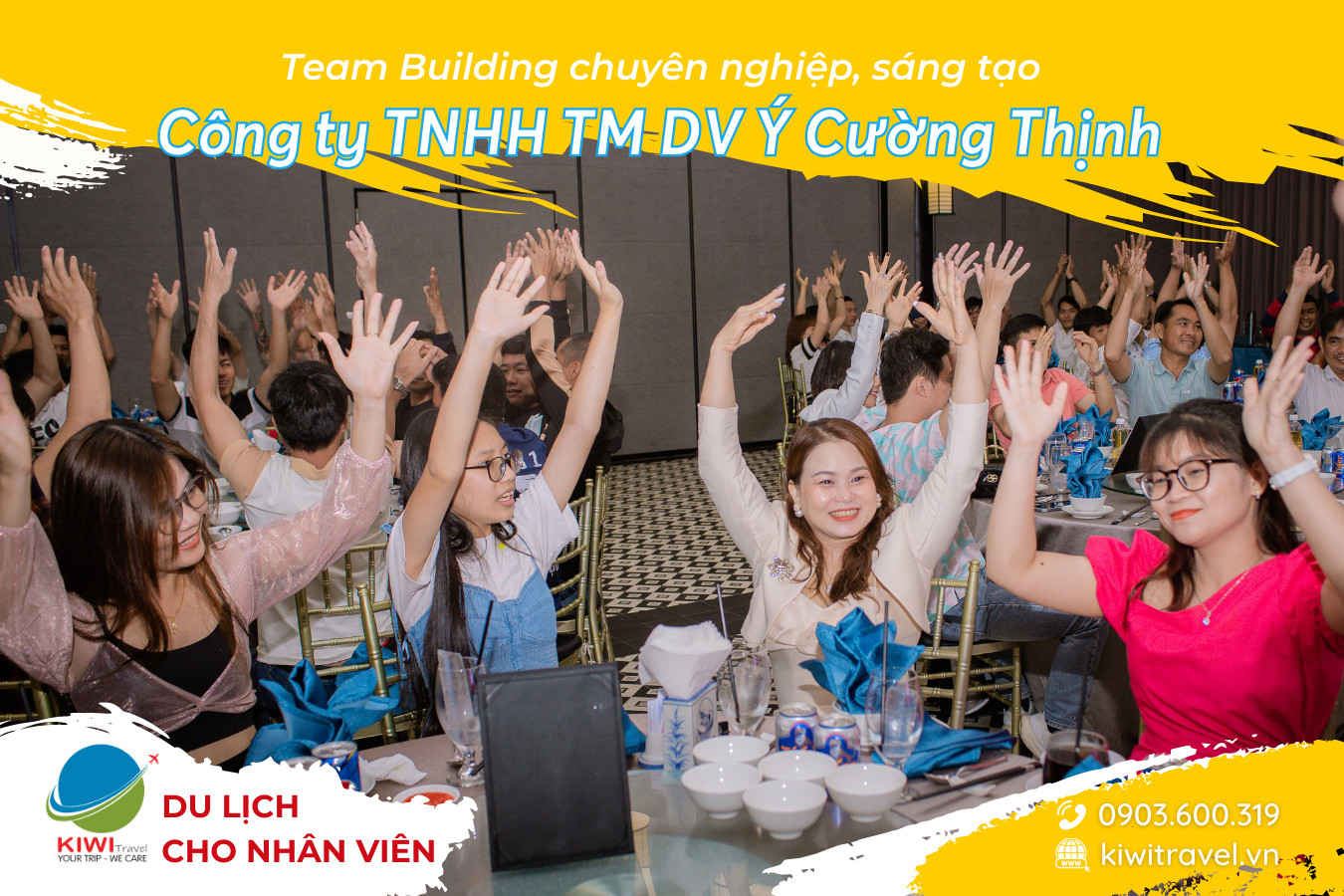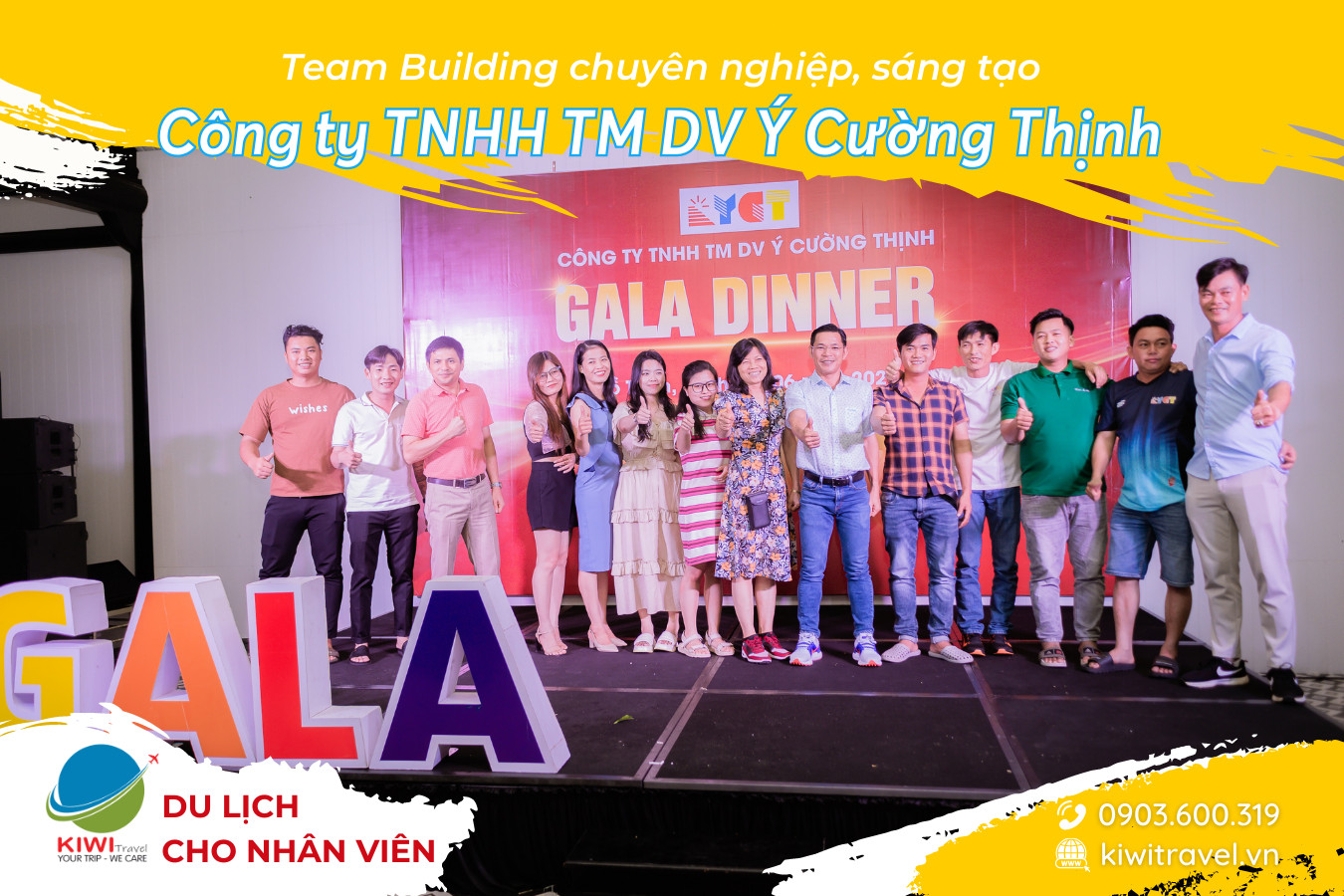 Với một kịch bản sáng tạo, các vật dụng, trang thiết bị hiện đại và đội ngũ nhân viên dày dặn kinh nghiệm của Kiwi Travel, đội ngũ nhân viên của công ty Ý Cường Thịnh đã cùng nhau trải qua một chuyến đi đáng nhớ với những hoạt động vô cùng hấp dẫn của Team Building và nhiều kỷ niệm lắng đọng lại sau chương trình Gala Dinner.